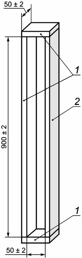 - форма в виде ящика, с внутренним сечением 50 x 50 мм и внутренним размером по длине не менее 700 мм;