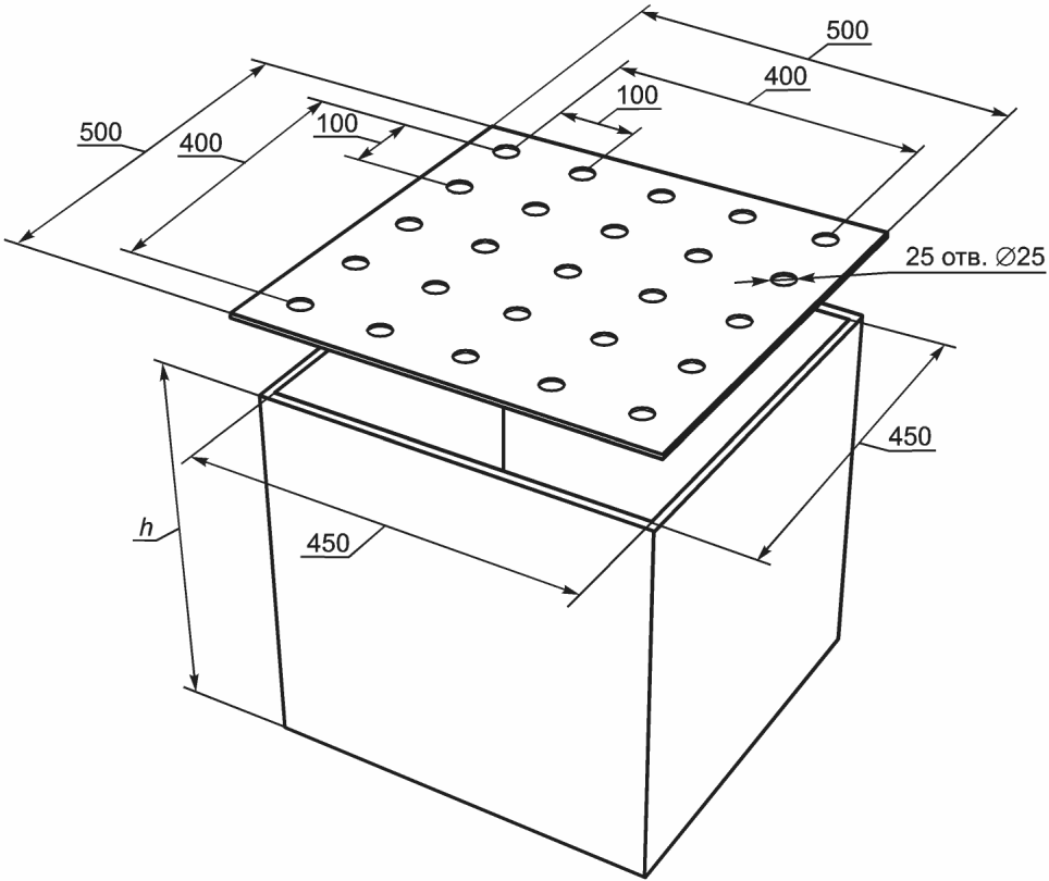 - пластина металлическая размером 500 x 500 мм, толщиной до 2 мм с отверстиями (см.