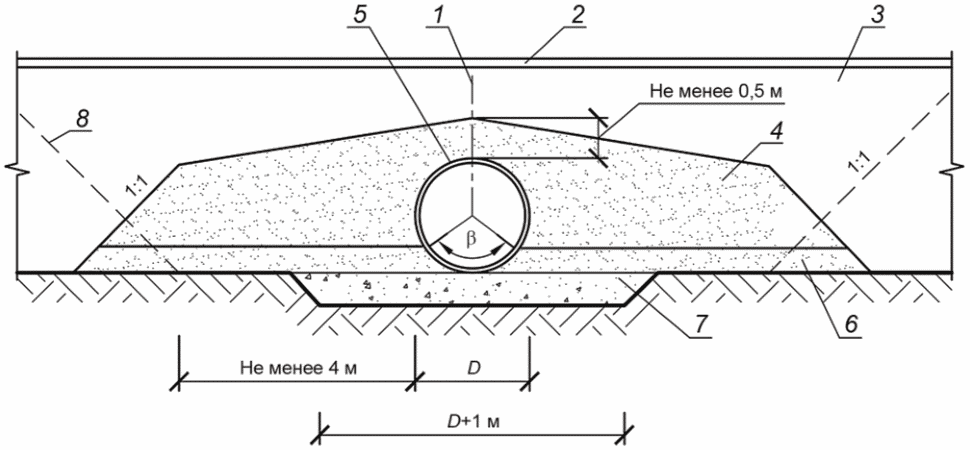 5 - МГЭ; 6 - нулевой слой; 7 - подушка; 8 - откос насыпи