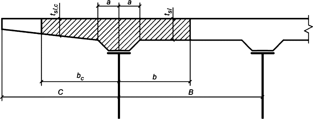 III <= 0,8·(H + bsl); IV <= 1,6·(H + bsl) - на остальной длине пролетного строения соответственно в крайней и средней четвертях пролета.
