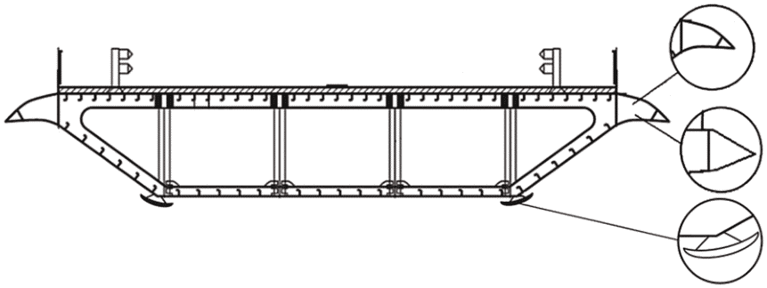 3.25 секционная геометрически-подобная модель: Модель секции, представляющая собой жесткую конструкцию, в которой соблюдается геометрическое подобие конструктивных элементов пролетного строения.