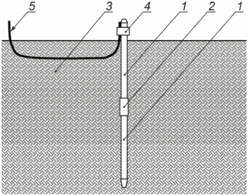 3.10 заземлитель (earth electrode): Часть или несколько элементов заземляющего устройства, находящихся в непосредственном электрическом контакте с землей и обеспечивающих рассеивание тока молнии в земле.