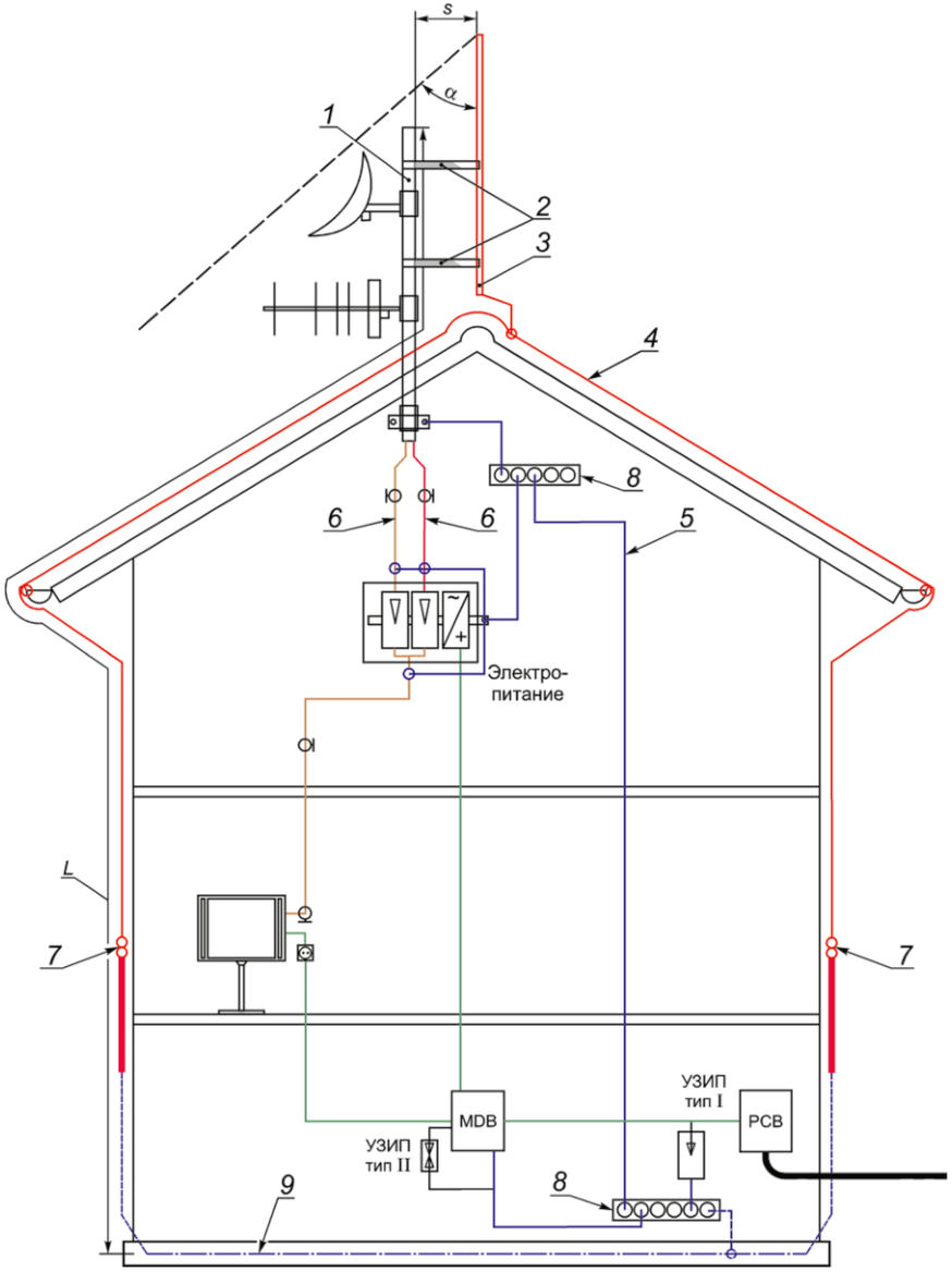3.7 система токоотводов (down-conductor system): Часть внешней системы молниезащиты, предназначенная для отведения тока молнии от молниеприемников в заземляющее устройство.