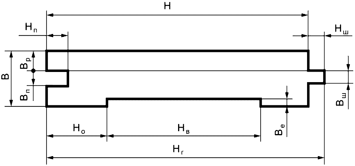Hв | Ширина паза определяется величиной 2 x Hо. Допускается изготовлять несколько пазов, форма паза не ограничивается |