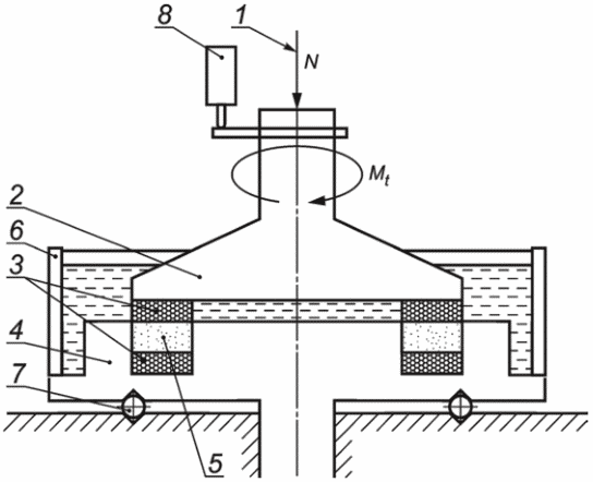 - устройства, позволяющие проводить измерение вертикальной нагрузки и вращающего усилия, а также вертикальных деформаций образца и углового смещения;