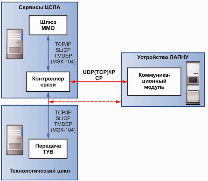 3.1.7 контроллер связи: Программный компонент, обеспечивающий согласование протоколов обмена данными программно-технического комплекса верхнего уровня централизованной системы противоаварийной автоматики и устройства ЛАПНУ.