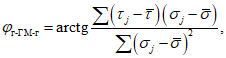 10.4 Вычисляют угол внутреннего трения в системе "грунт - геосинтетический материал - грунт"