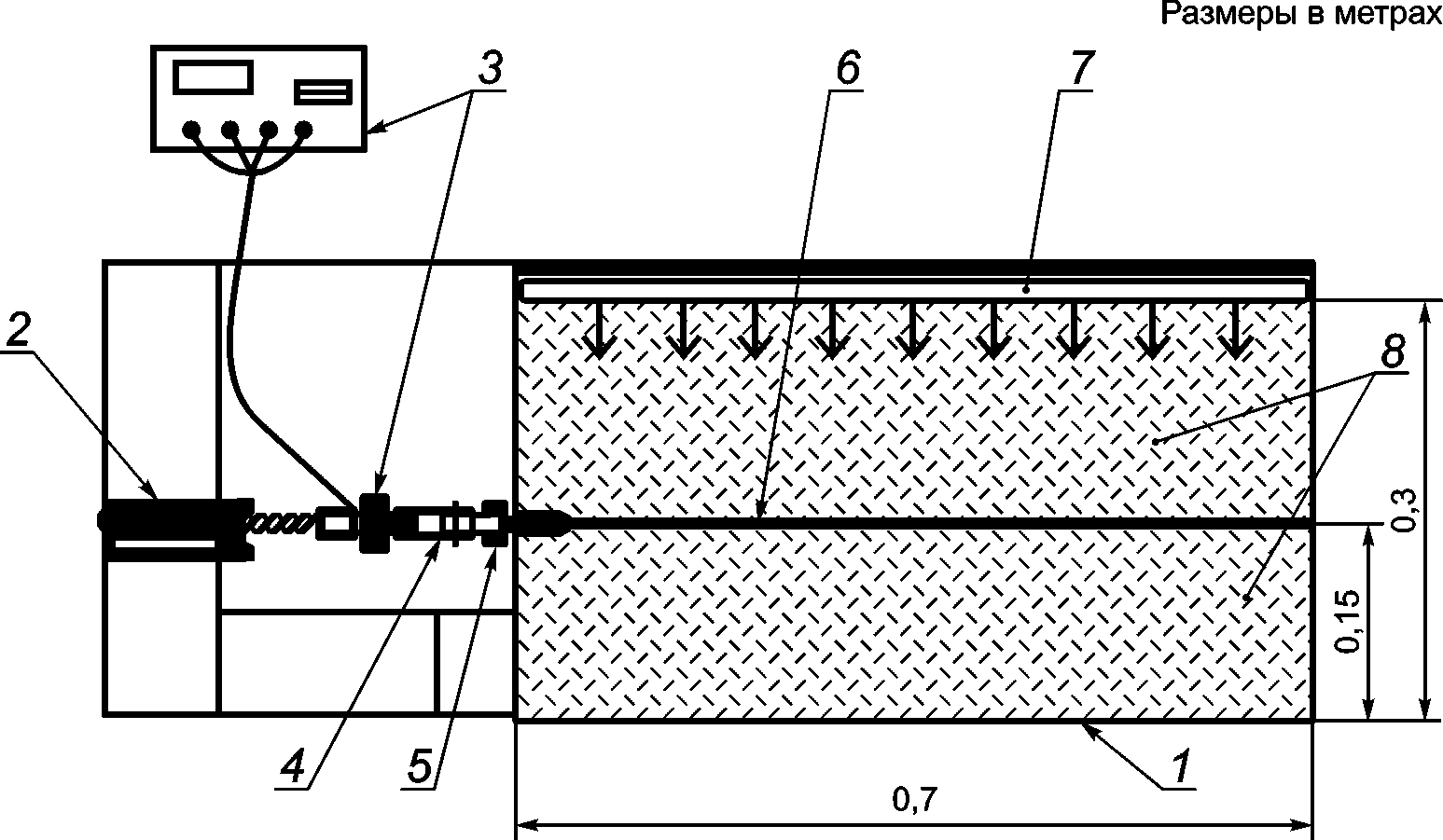 - устройство нагружения, создающее равномерное давление на горизонтальную поверхность формы для грунта, с верхним пределом нагружения не менее 400 кПа;