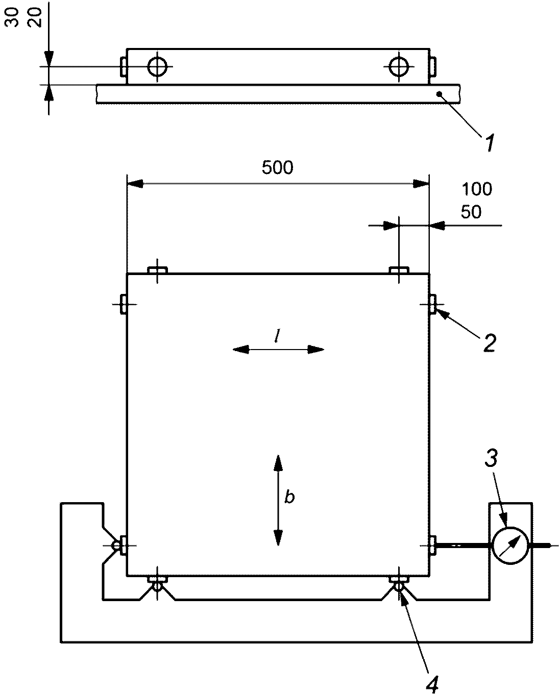 Метод B1: на боковые поверхности испытуемого образца наклеивают металлические пластины, как показано на