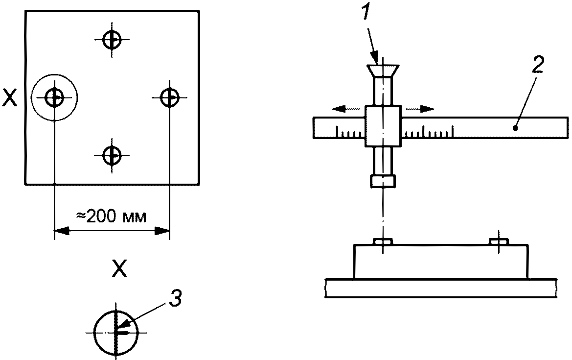 Метод B: рама, закрепленная на ровной базовой поверхности с микрометром (предел допускаемой погрешности - 0,01 мм) или другими средствами измерений (оптическими, электрическими и т.п.), пределы допускаемых погрешностей которых составляют 0,1 мм/м (см.