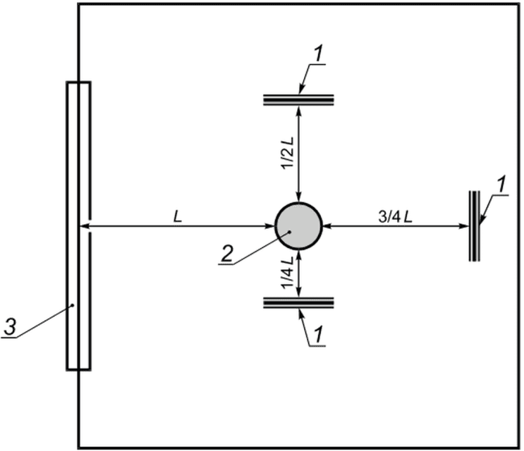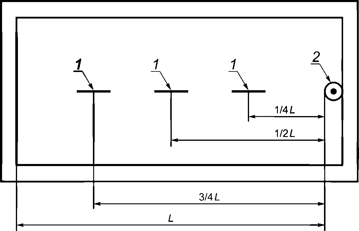 Примечание - Нумерация приемных сосудов такая же, как и пластин. -------------------------------- <a> Определение среднего значения за весь период испытаний (включая продолжительность открытия); согласно ИСО 9227 (1,5 +/- 0,5) мл/ч при горизонтальной площади сбора 80 см 2 (эквивалентно трем приемным сосудам диаметром 10 см каждый). |
