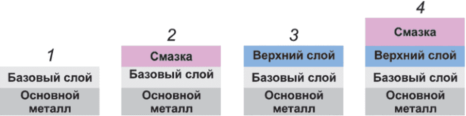 1 - только базовый слой; 2 - базовый слой + смазка;