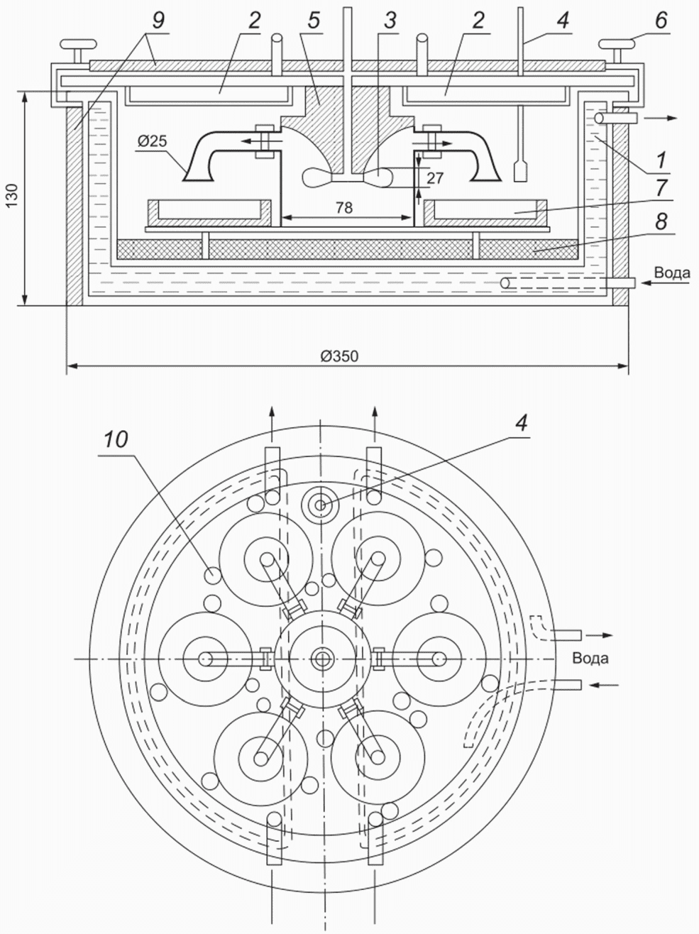 5.5.8) без крышек устанавливают в аппарат так, чтобы патрубки для циркуляции воздуха находились над стаканчиками. Аппарат закрывают крышкой, крепят ее винтовыми зажимами и включают пропеллерную мешалку. В таких условиях уголь в стаканчиках выдерживают не менее 2 ч для достижения состояния равновесия с атмосферой кондиционирования.