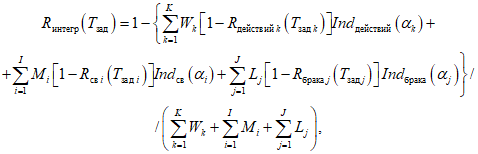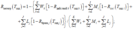Вероятность Rинтегр(Tзад) нарушения надежности реализации процесса управления качеством системы без учета требований по защите информации вычисляют по формулам: