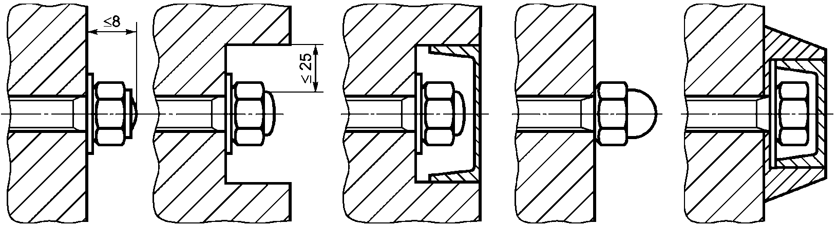6.6 Оборудование должно иметь защиту концов болтовых соединений, выступающих более чем на 8 мм за пределы поверхности оборудования, как показано на