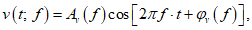 В случае линейной системы отклик конструкции в интересующей точке v(t, f) также имеет вид гармонического сигнала, описываемого формулой