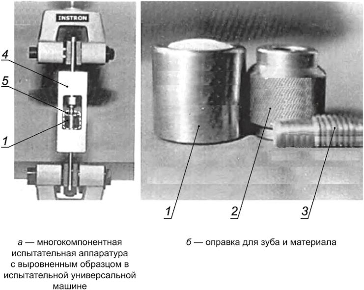 - обеспечивать закрепление образца "субстрат зуба - адгезив" в испытательной машине, исключая в процессе установки и закрепления приложения к образцу силы и деформации, таких как растяжение, изгиб, сдвиг и кручение;