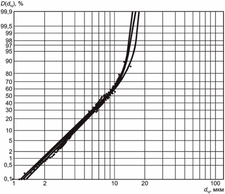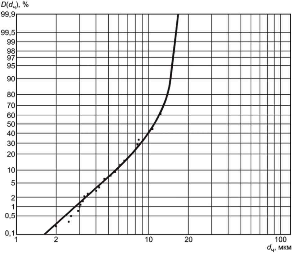4.3.7 Результаты определения фракционного состава пыли в промышленном выбросе представляют в виде интегральных кривых распределения массы частиц пыли по диаметрам