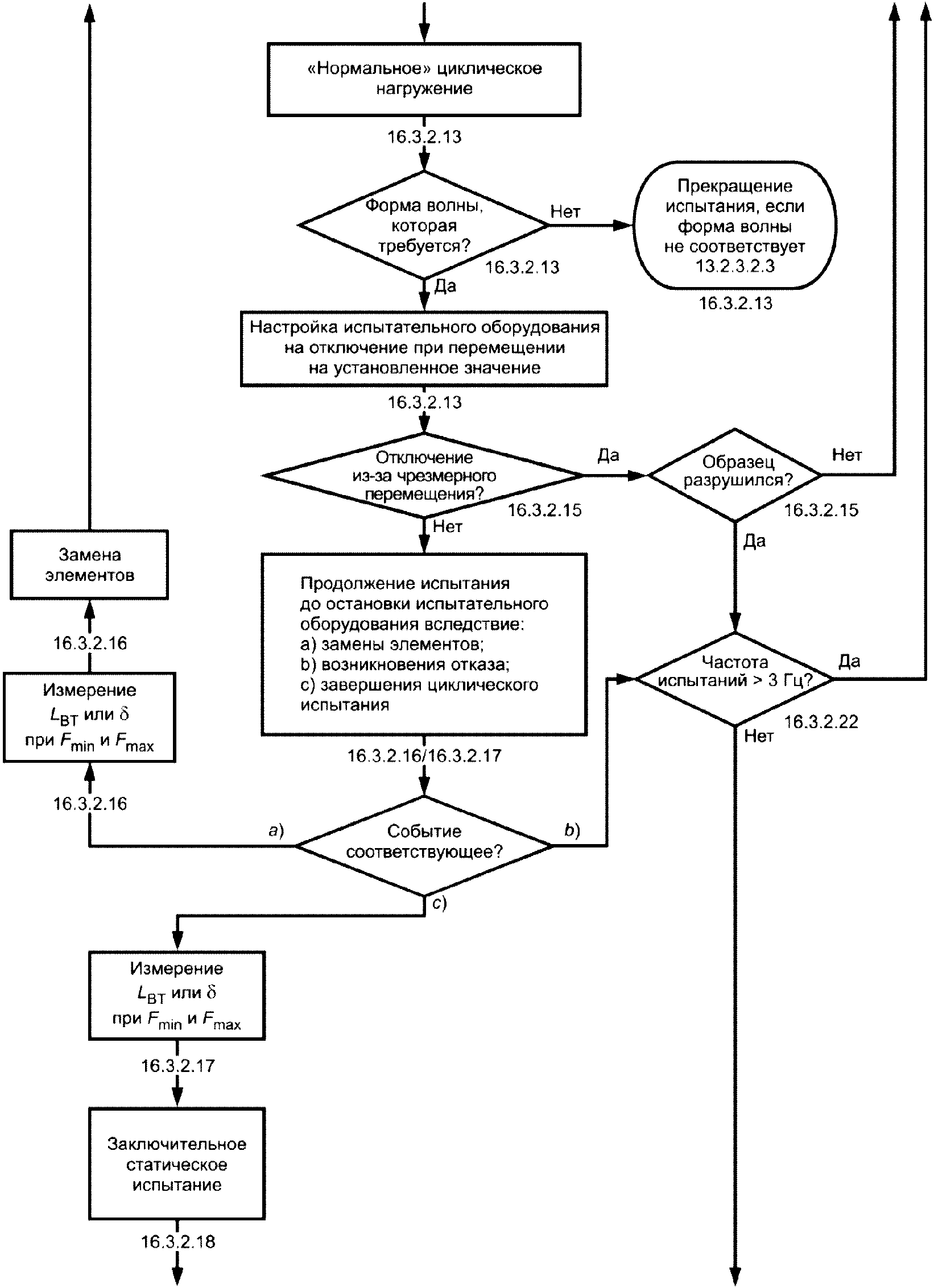 u) завершение циклического испытания и число циклов на момент отключения испытательного оборудования и значения расстояния