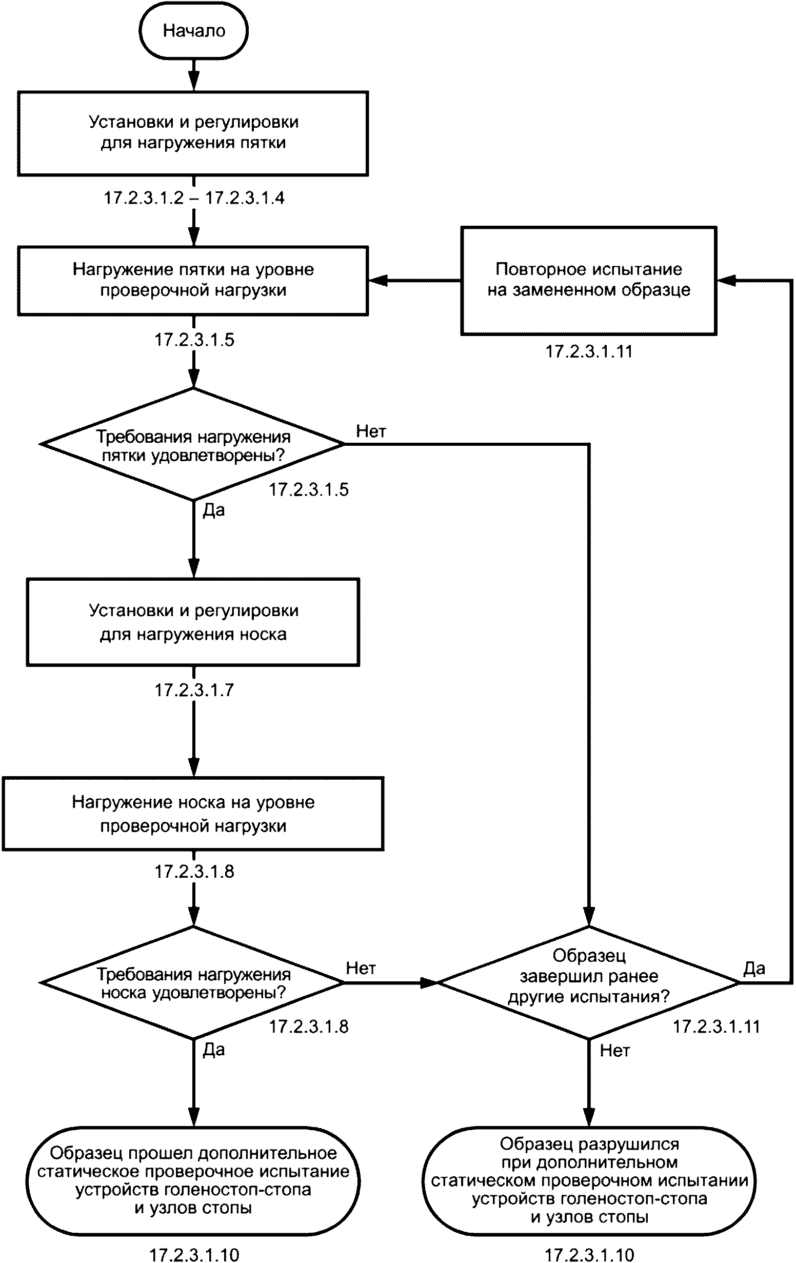 - дополнительные статические и циклические испытания голеностопных узлов или фиксаторов узлов стоп и всех узлов стоп как отдельных элементов;