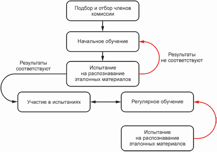 Член комиссии перед первой оценкой запаха должен быть проверен на нормальное функционирование органов обоняния. Членам комиссии, не прошедшим испытание, разрешается повторить его, например после болезни. Для оценки запаха допускаются только члены комиссии с нормальным восприятием запаха.