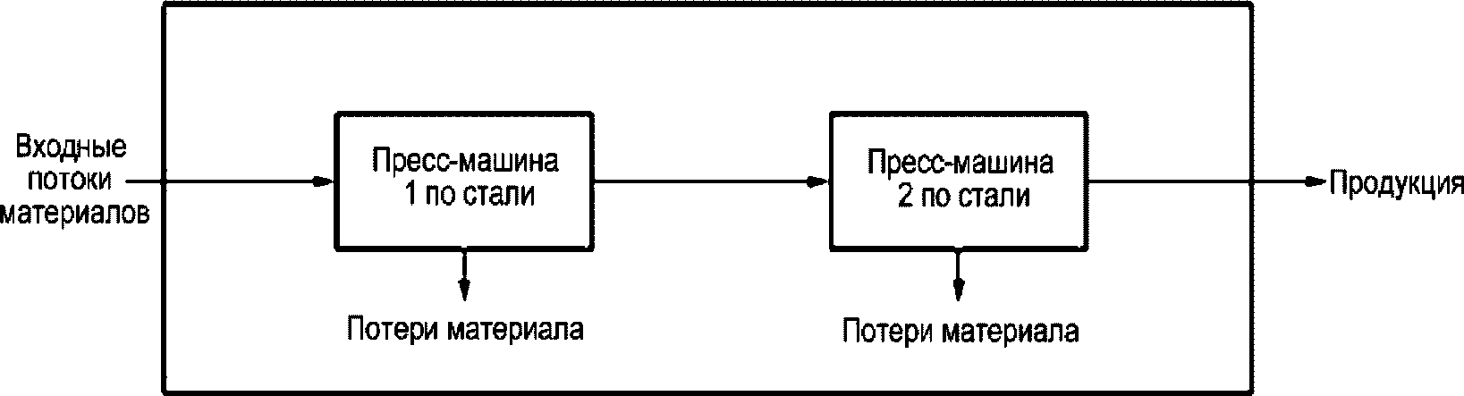 рисунке А.1. Проектная команда принимает решение признать эти процессы за одну отдельную производственную единицу для расчетов в рамках MFCA-учета, чтобы уменьшить их сложность.