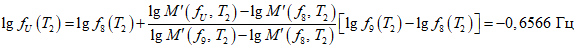 T2), координату точки на логарифмической шкале частот рассчитывают по
