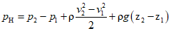 v1 и v2 - скорость жидкой среды на выходе и входе в насос соответственно, м·с-1;