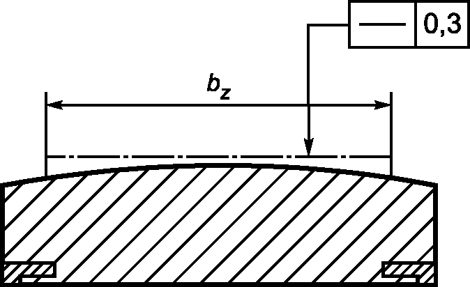 Отклонения прямолинейности поперечного профиля от плоского профиля допустимы только в виде кривой с постоянными параметрами по ширине свободной зоны; допуск на прямолинейность в этой области приведен на