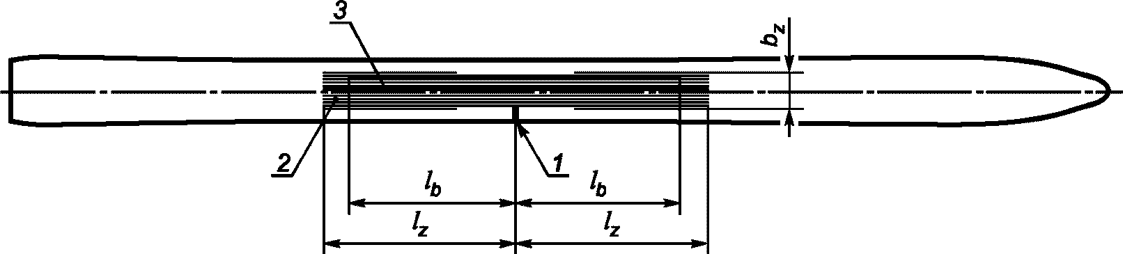 1 - 4 стальная крепежная пластина; lb - длина зоны монтажа