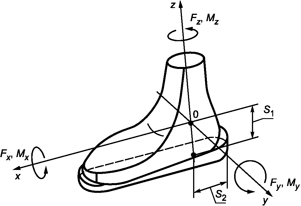 подошвы ботинка на ось z; S2 - проекция нижней части подошвы