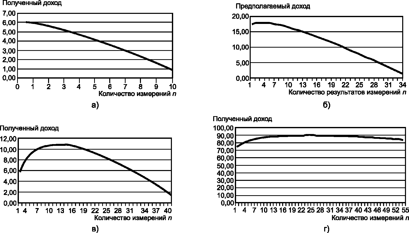 Примечание - Оптимальное число измерений nопт по критерию максимальной выгоды достигается в точке, где наблюдается максимум этой функции, при том что вторая производная меньше нуля