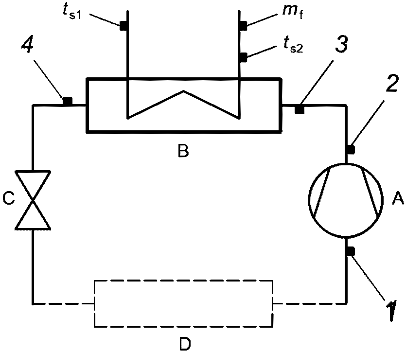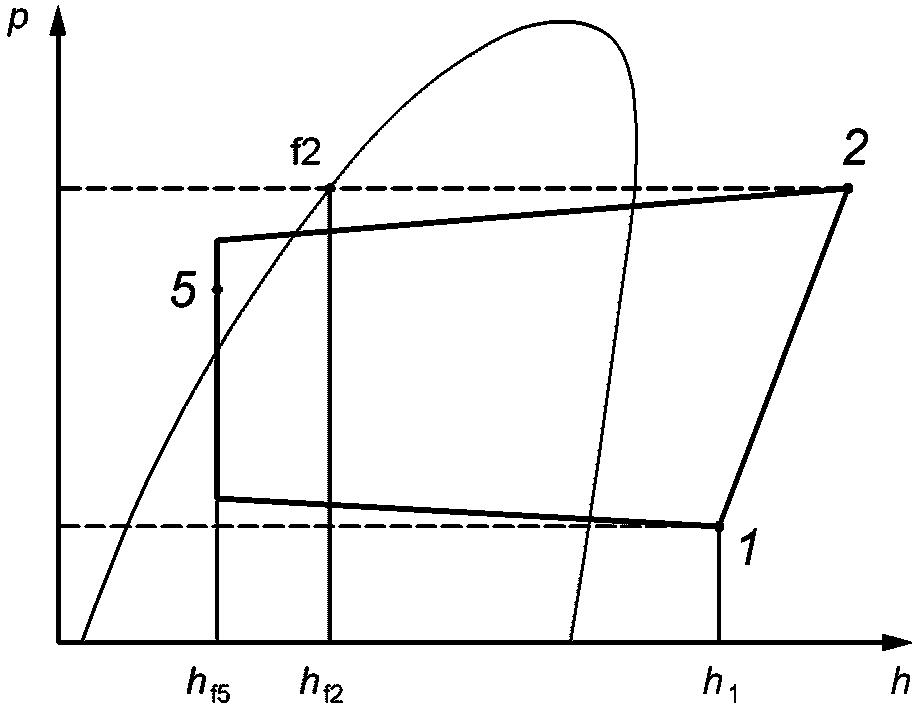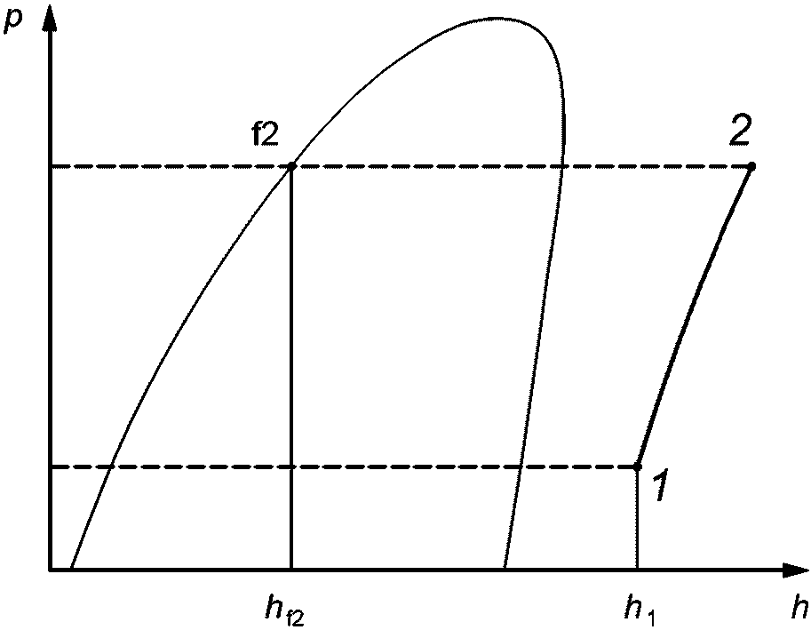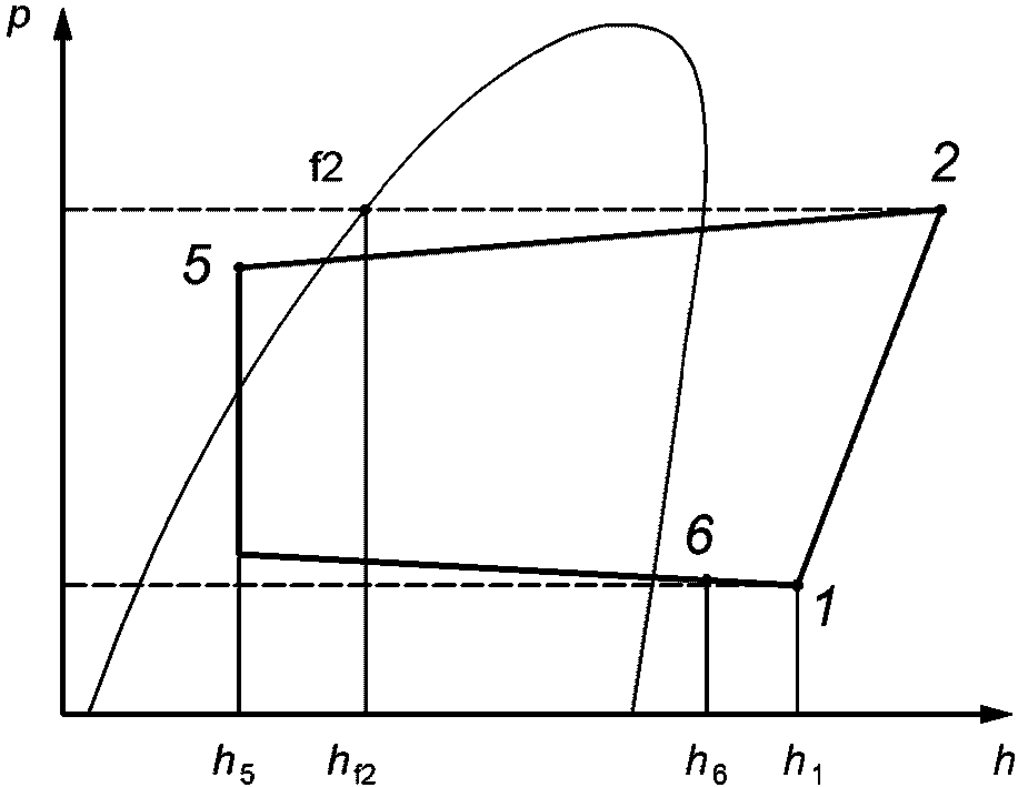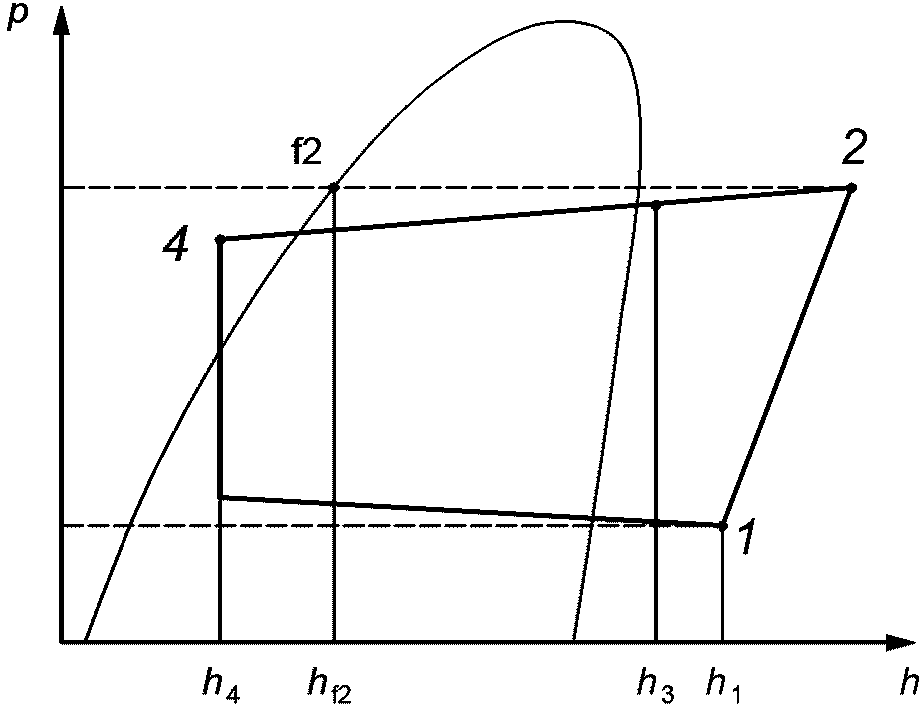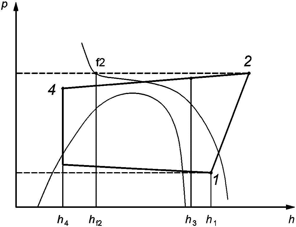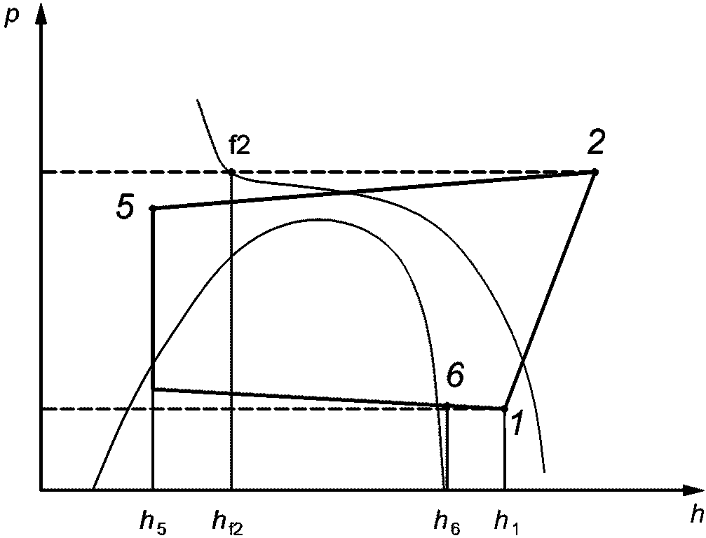 <**>): Произведение массового расхода хладагента через компрессор на разность между удельной энтальпией хладагента на входе в компрессор и удельной энтальпией хладагента на входе в расширительное устройство испарителя.