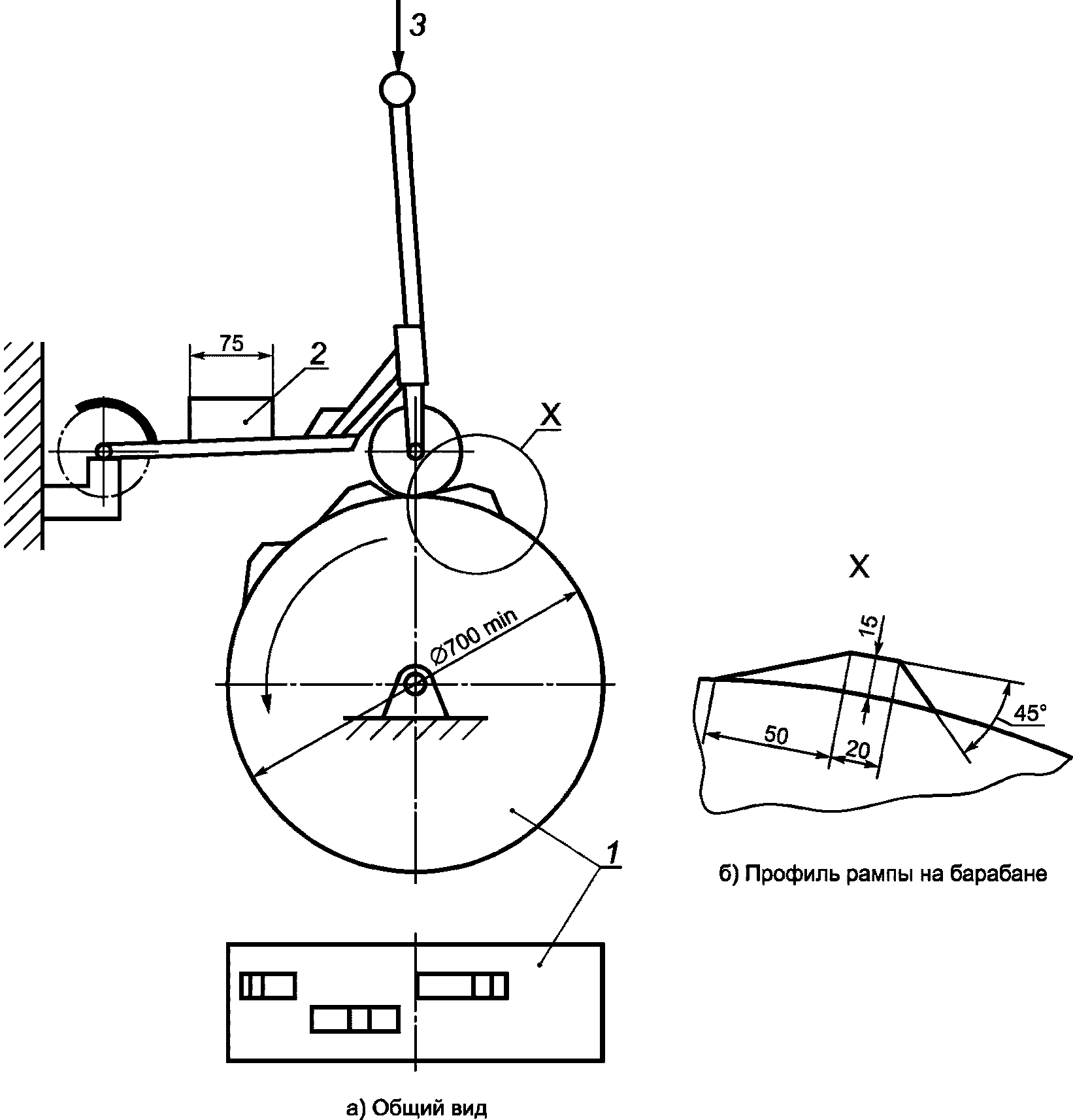 1 - барабан; 2 - масса: 90 кг для класса A и 45 кг