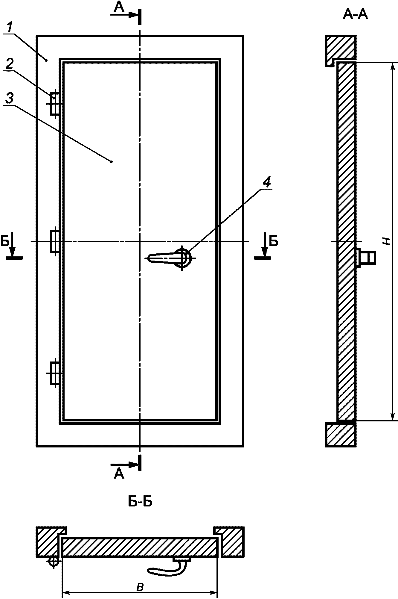 1 - рама; 2 - петля; 3 - полотно; 4 - ручка защелки