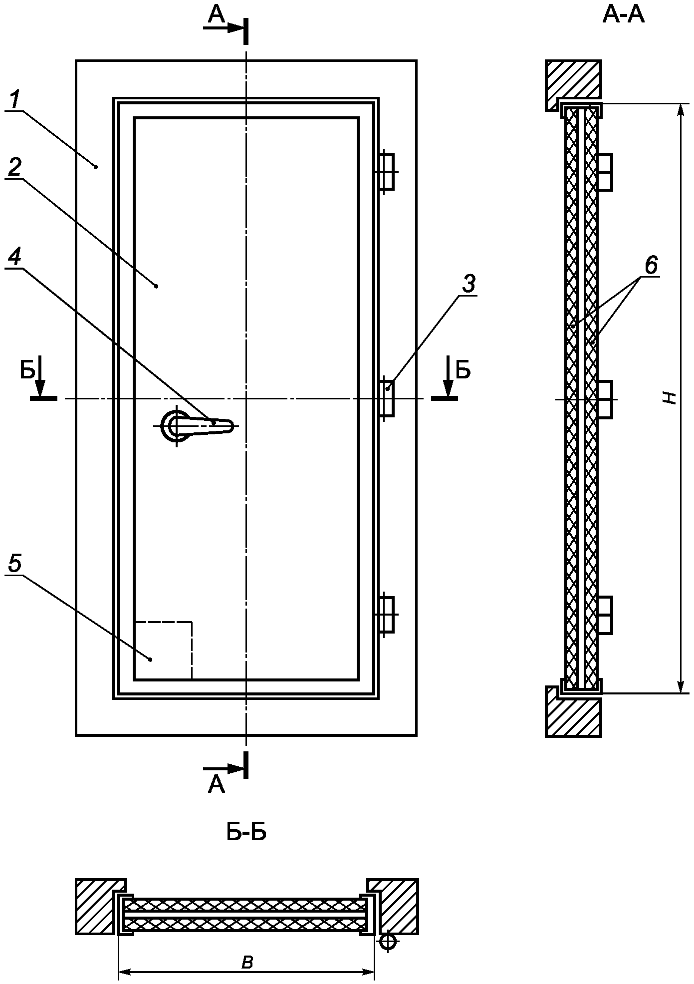 Рисунок А.1 - Одностворчатая дверь А-60 с изоляцией