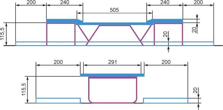 3.2.1 Внутренние размеры рамы с натянутым прыжковым полотном батута должны иметь следующие размеры: длину (505 +/- 6) см, ширину (291 +/- 5) (см.
