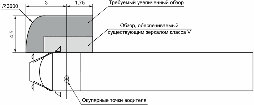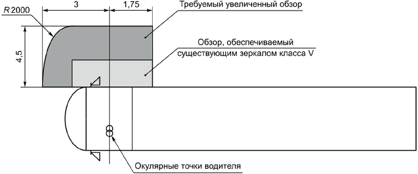 - класс V: Внешнее устройство бокового обзора, обеспечивающее поле обзора, определенное в