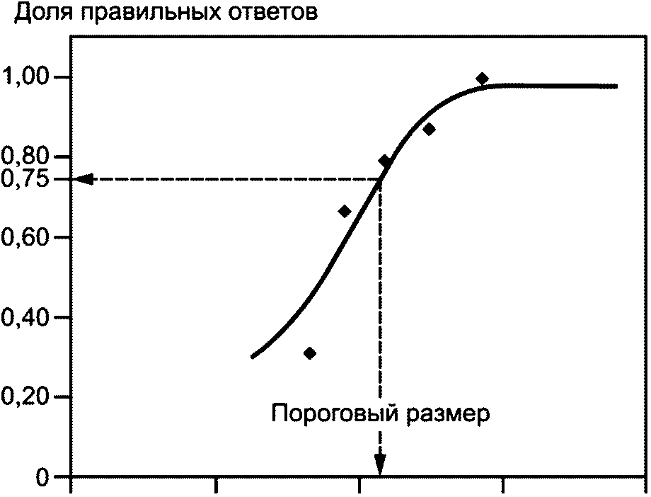 размерами треугольника и долей правильных ответов