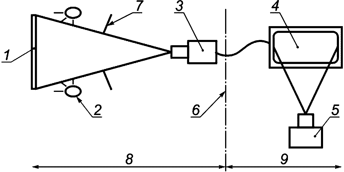 Д.1.2.2 Этап 2. Помещают объект на заданном расстоянии от видеокамеры. Измеряют (например, измерительным микроскопом) ширину изображения объекта на мониторе b) в отсутствие естественного солнечного освещения.