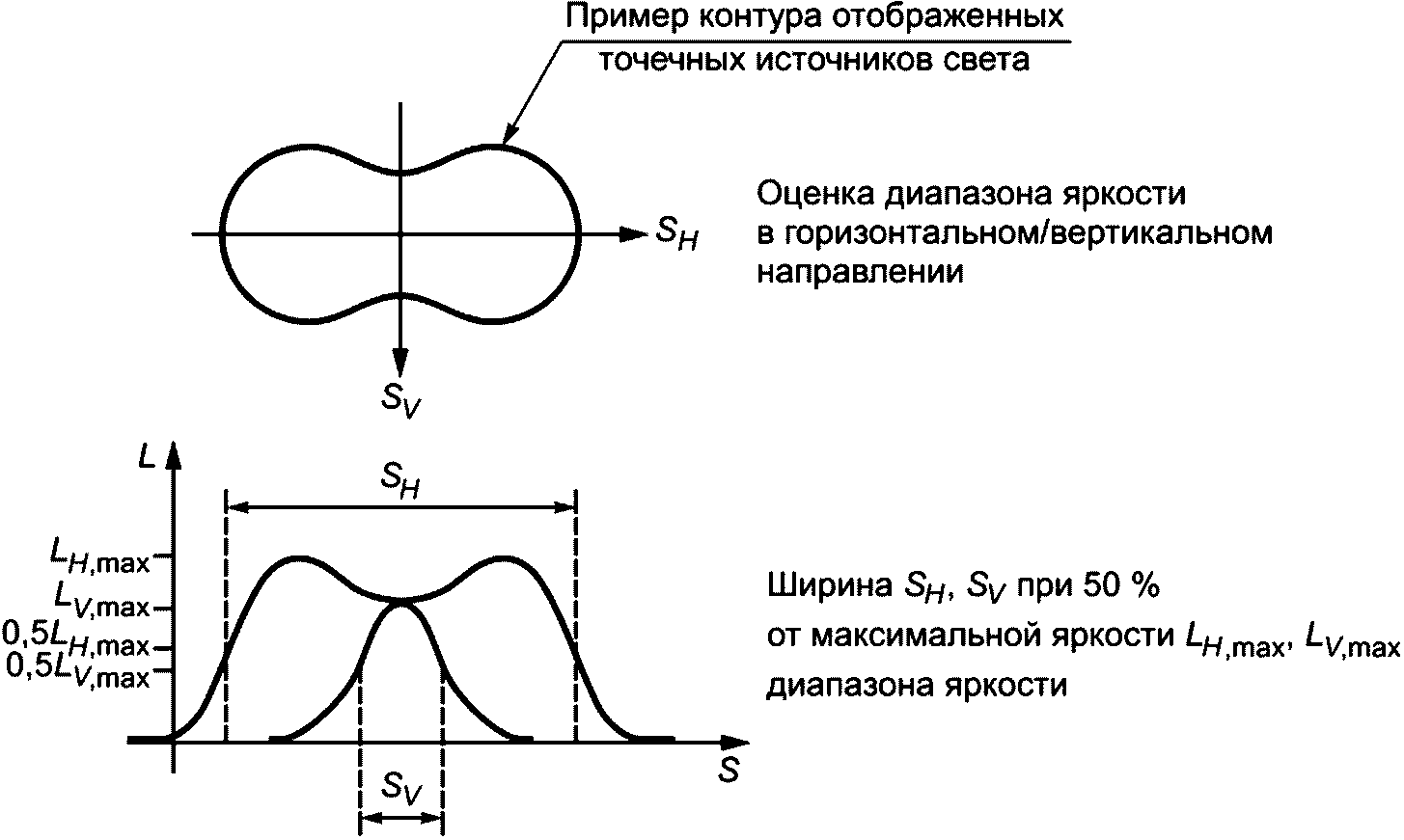 LH,max и минимальной яркостью в диапазоне яркости