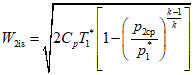 - изоэнтропическая скорость истечения газа/воздуха, м/с;