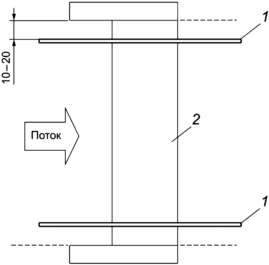 - минимальное расстояние между отсечными пластинами в решетках, исследуемых при числах Re > 4,0 x 105, должно составлять: