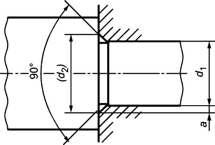 a - размер зенковки; d1 - диаметр отверстия; d2 = d1 + 2a