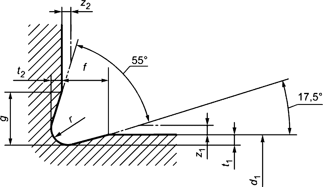 r - радиус поднутрения; t1 - глубина поднутрения;