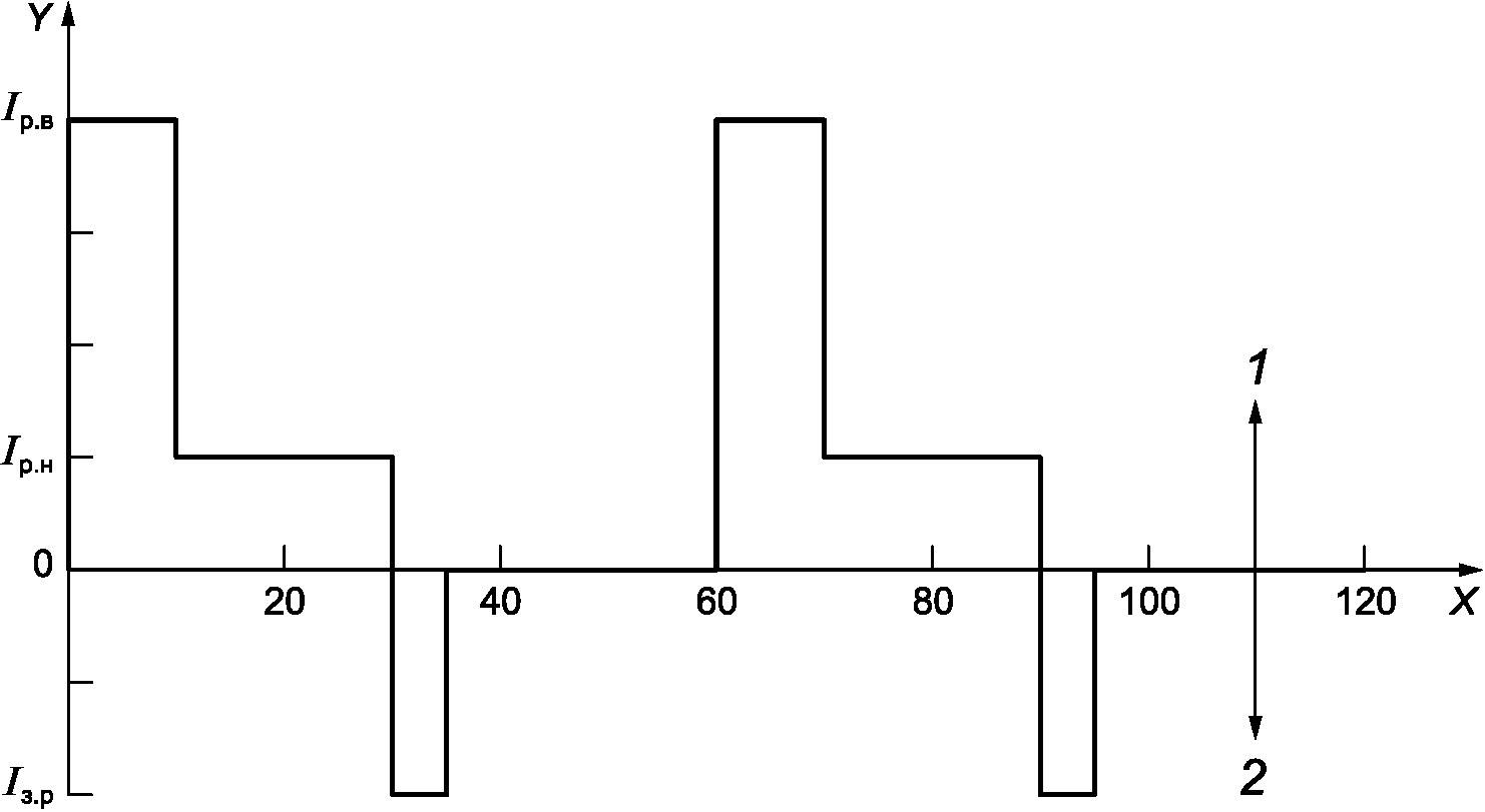 Микроцикл с рекуперативным зарядом должен быть представлен последовательными четырьмя уровнями тока, повторяющимися каждые 65 с.