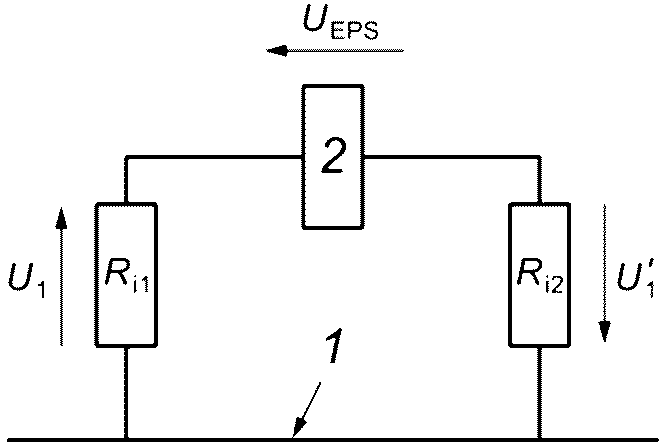 1 - ИУ; 2 - измеритель диэлектрической прочности;