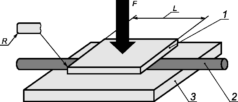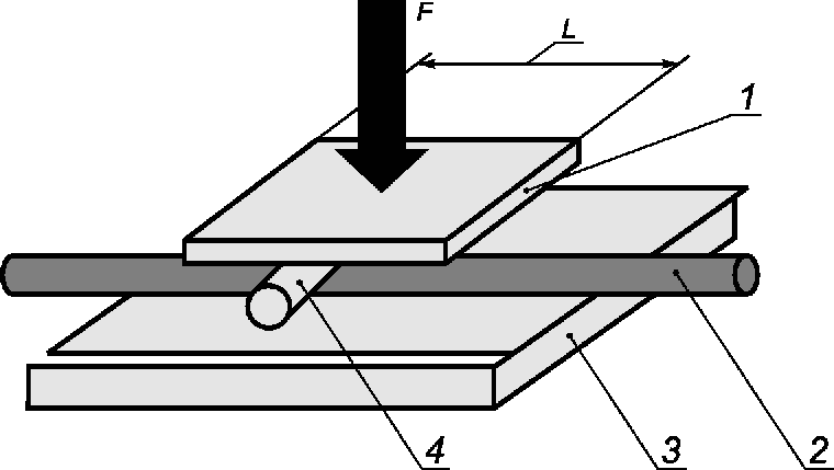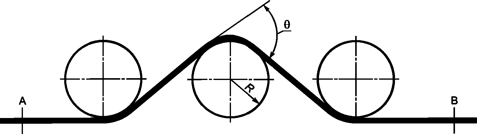 рисунок 2). Диаметр роликов, входящих в состав системы роликов, должен быть не менее минимально допустимого диаметра изгиба испытуемого ОК, и иметь, как правило, диаметр 1 м;