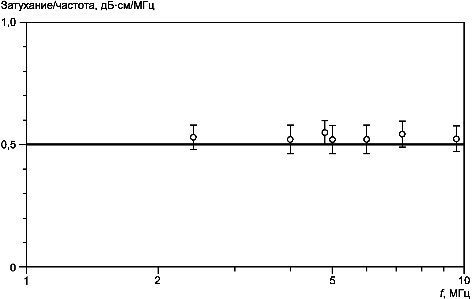 Затухание измеряется по уменьшению интенсивности звука после введения плоско-параллельного образца в ультразвуковой пучок в воде. Вводится поправка на отражение ультразвука от поверхностей раздела