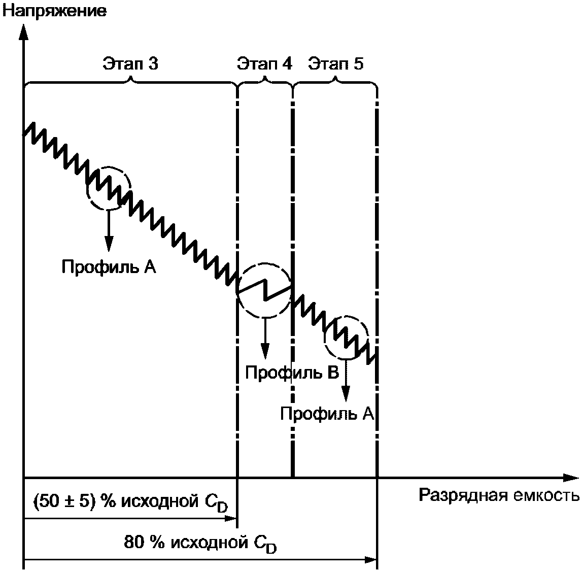 ВАХ определяют путем измерения напряжения в конце импульса разряда/заряда постоянным током продолжительностью 10 с при условиях, указанных в